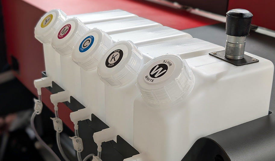 The main supply tank with white ink stirring and recirculation keeps ink flowing smoothly and prevents clogging, helping you maintain consistent print quality with less downtime.